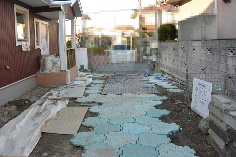 玄関横の駐車スペース。 転落防止の柵も これは白くなります。